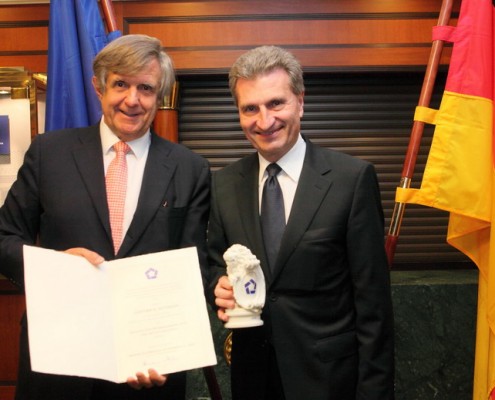 Der Preis ist mit Euro 5.000,- dotiert, die Kommissar Oettinger an eine karitative Organisation spendet.
